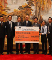 5月5日,中国澳门美高梅度假酒店筹募善款37万美金,支援青海玉树灾区救援与重建。青海地震发生后,酒店管理层和员工纷纷奉献爱心,慷慨解囊。捐献仪式上,澳门美高梅总裁简博贤(中)代表酒店全体员工向中央人民政府驻澳门特别行政区联络办公室经济部副部长陈翔(左三)递交善款支票。
